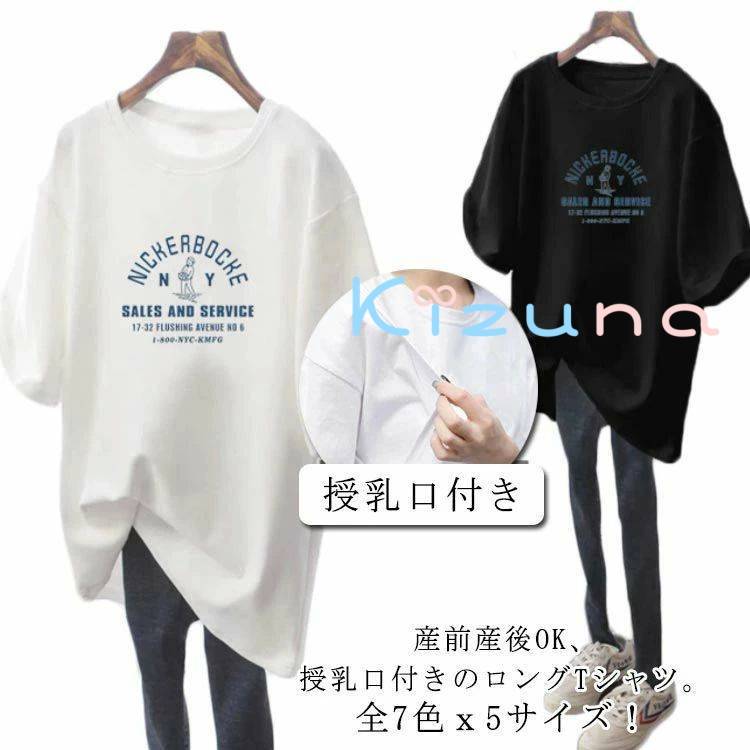 半袖 マタニティウェア 授乳服 春夏 授乳トップス tシャツ カットソー 授乳口付き 妊娠 妊婦服 ロングtシャツ ロンt ゆったり 大きいサイズ 母親 服装 トップス 出産 産前産後 夏服