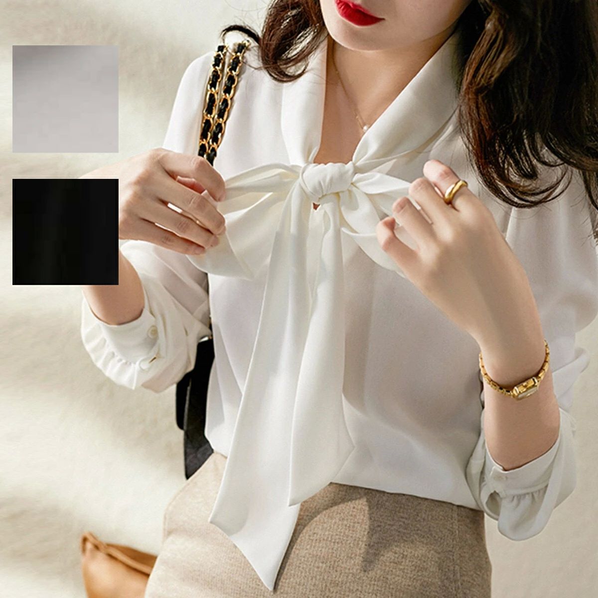 リボンタイシャツ スカーフタイ シフォンシャツ ボウタイブラウ