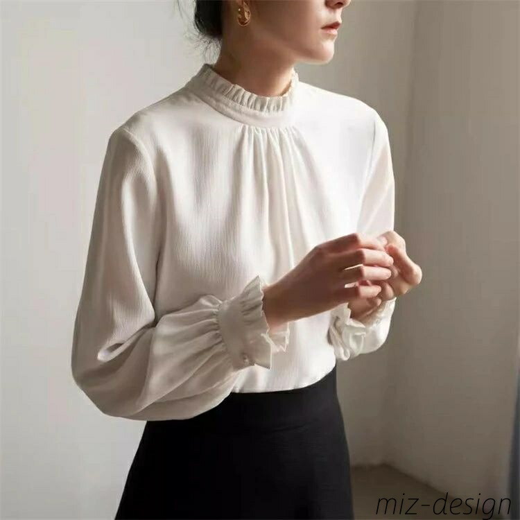長袖 オフィス おしゃれ 春秋 夏 オシャレ ブラウス フリル裾 フォーマル トップス フレア袖 無地 可愛い カットソー OL 通勤 薄手