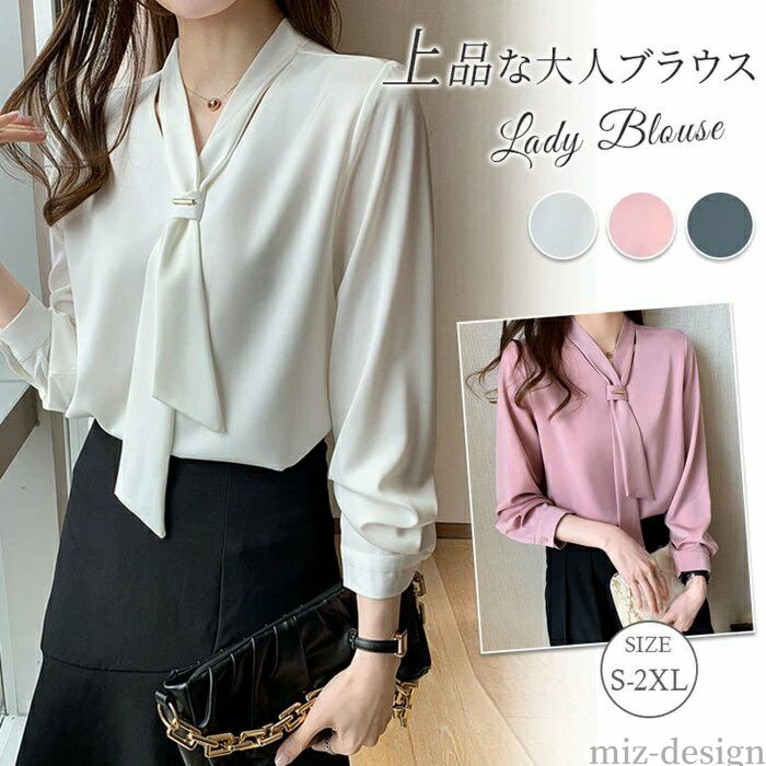 シンプル シャツ トップス 長袖 フォーマル シフォン ボウタイ とろみシャツ レディース ボウタイブラウス ブラウス