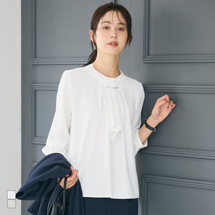 きちんと見え可愛くならないボウタイブラウス?シフォン シャツブ