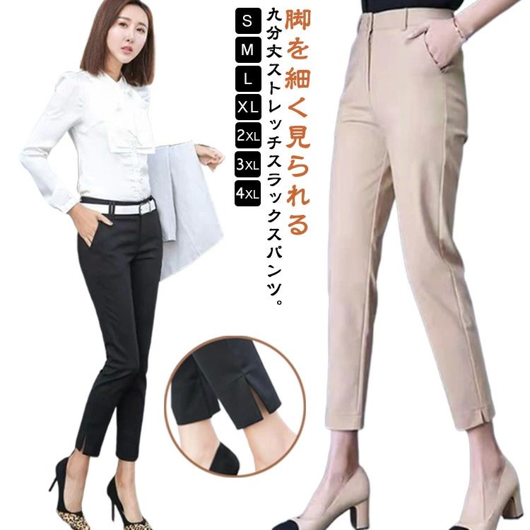 スリム ストレッチパンツ スラックス 着痩せ 動きやすい 九分丈 スキニーパンツ 美脚 ボトムス ブ テーパードパンツ