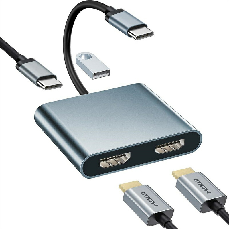 USB C HDMI 変換アダプター デュアル Type-C マルチディスプレイアダプタ 4-in-1 2ポートHDMI拡張 USBディスプレイアダプタ 3画面