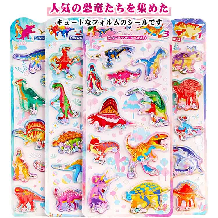 手帳用 ぷっくりシール 3D ランダムで4枚セット ぷくぷくシール 泡ステッカー ぷっくり ステッカー ぷく 恐竜シール デコ ぷくぷく DIY用 貼り付け スマホケース 水 手作り