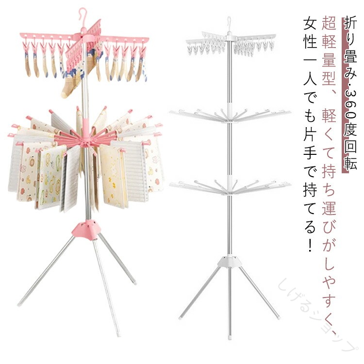 パラソル型 物干しスタンド 360度回転 折りたたみ コンパクト 室内用 ランドリーラック 3段 2段 タオル干し 部屋干し ピンチハンガー対応 洗濯物干し