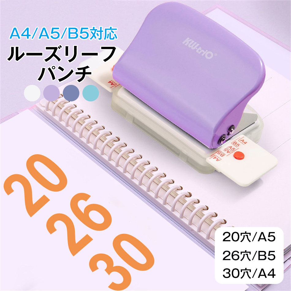 穴あきパンチ 穴あけパンチ ルーズリーフパンチ ルーズリーフ パンチ 事務器 あなあけパンチ A4 B5 A5対応 穴あけ5枚 30穴 26穴 20穴 6穴 DIY 事務用品 手帳作り 手芸 文房具