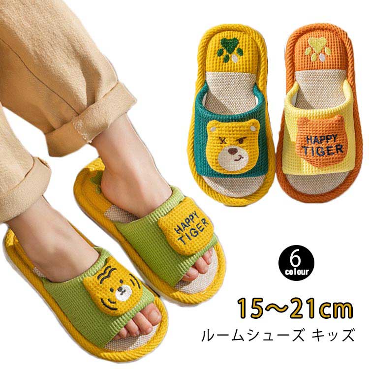 ルームシューズ キッズ用 洗える 滑り止め 消音 綿麻スリッパ 15cm 16cm 17cm 18cm 19cm 20cm 21cm アニマル柄 男の子 女の子 小学生 春 夏 プレゼント 室内履き