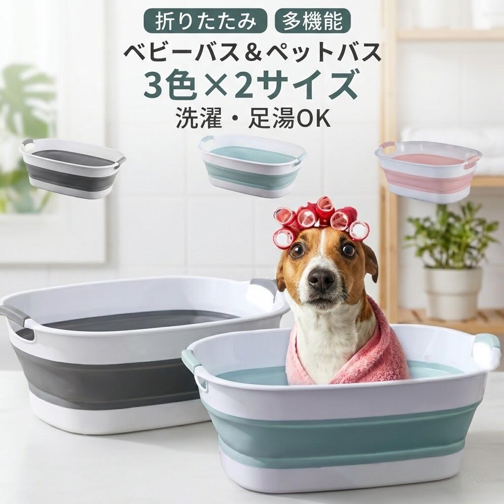 収納便利 折り畳めて便利、大き目なベビーバス&ペットバス 桶 洗い桶 ペット 犬猫用 お風呂 沐浴 折りたたみ