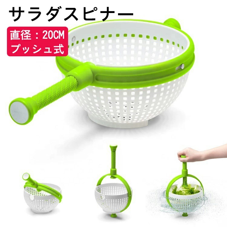 サラダスピナー サラダ水切り ザル 野菜 スピナー サラダ 水切り器 プッシュ式 野菜スピナー ボウル 水切り キッチン用品 回転式 野菜洗浄 一人食 サ 野菜脱水機