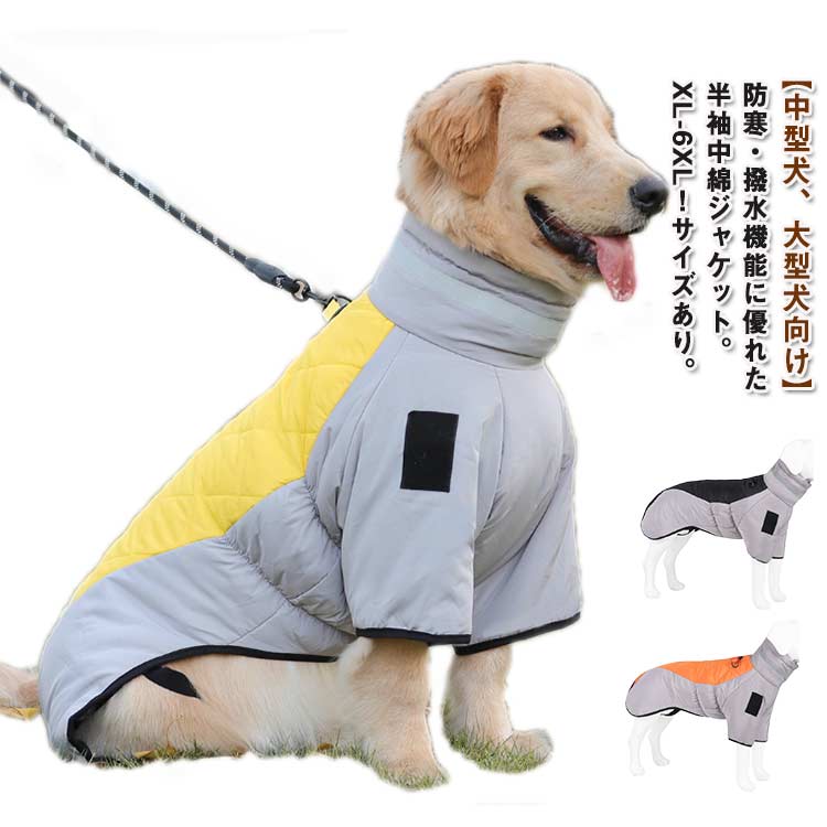 XL-6XL ドッグウェア 背中開き 中綿 コート 配色 中型犬 大型犬 向け 犬服 ダウン ジャケット ハイネック ハーネス 秋 冬 3XL 防寒 防水 撥水 着脱簡単 背中ファスナー付き 軽量
