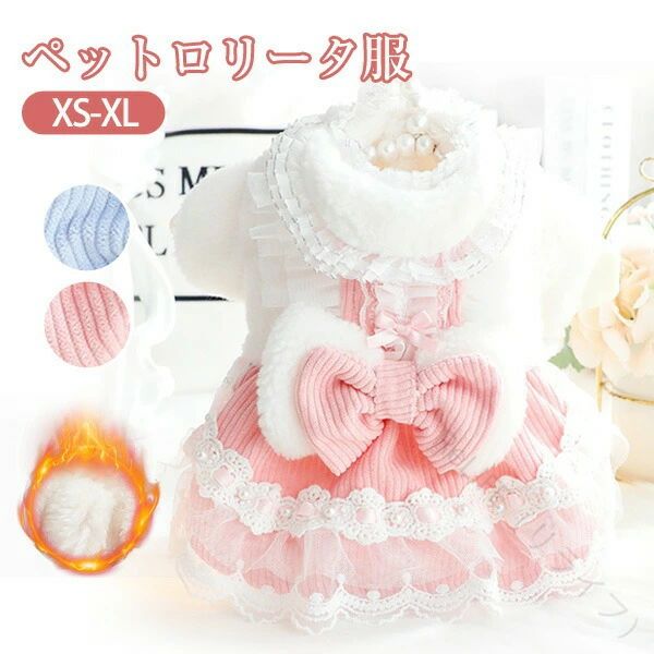 犬服 猫服 ペット ドレス 秋冬 可愛い レース ワンピース 裏起毛 ピンク 蝶結び ペット服 犬 猫 犬の服 猫の服 小型 パーティードレス