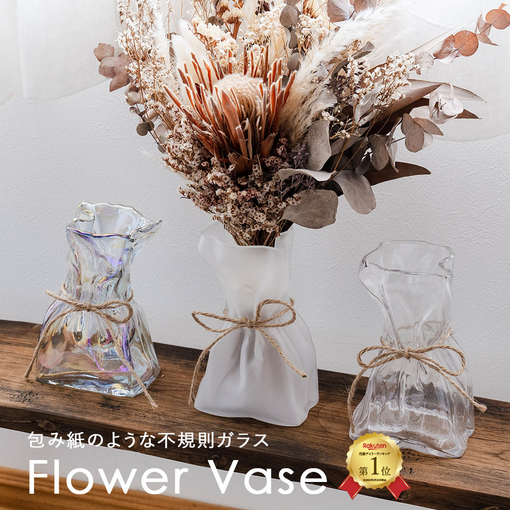 花瓶 花びんフラワーベース ランダムシェイプ ガラス オーロラ 大きい おしゃれ かわいい クリア 一輪挿し 花束 ドライフラワー インテリア シンプル 北欧 花器 新築祝い リビング 韓国インテリア