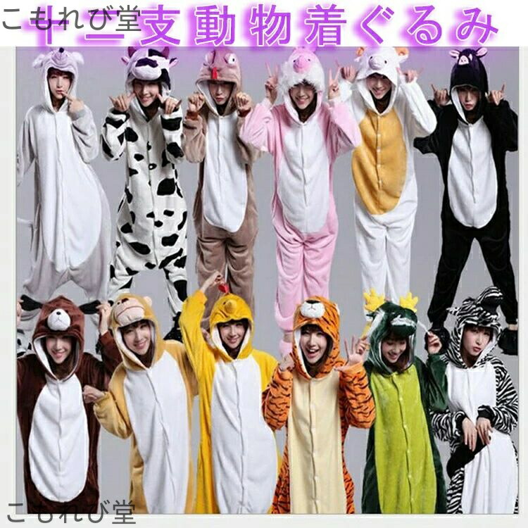 大人用十二支動物着ぐるみ カップル、家族のお揃い ふわふわに