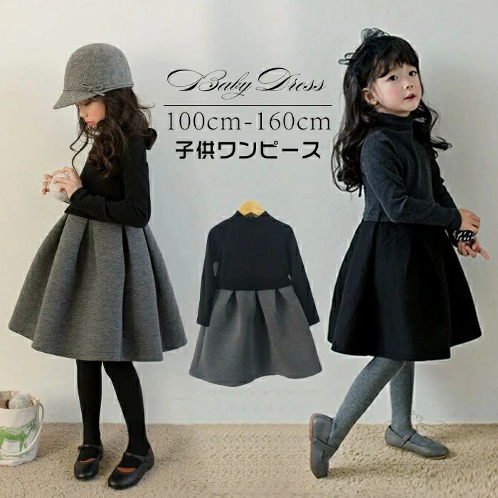 入園 卒園式 卒業式 キッズワンピース 七五三 発表会 ピアノ ブラック 黒 グレー 長袖 フォーマルワンピース 女の子 裏起毛あり