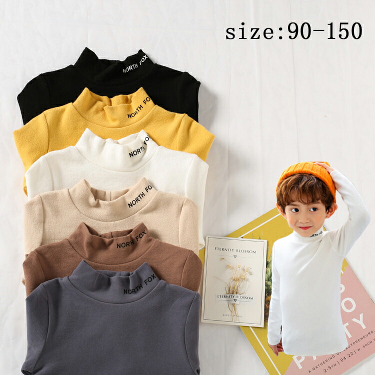 ハイネックトップス ジュニア用 秋冬用 長袖プルオーバー ストレッチコットン 無地インナー 卒園式入学式パーティ用 子ども服 大きいサイズ 着回し キッズインナー