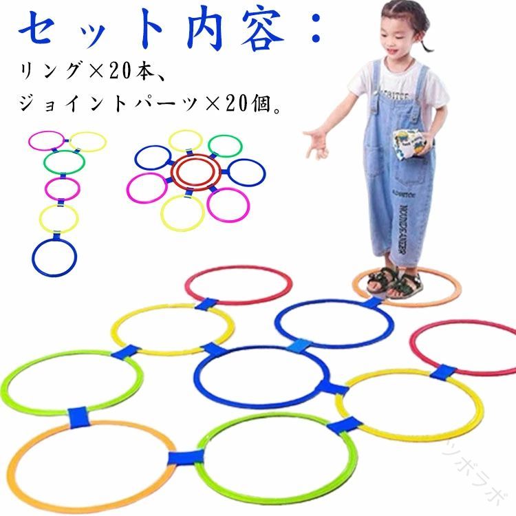 子供のバランス感覚を養うカラフルなけんけんぱリング20本セット 室内外での遊びやトレーニングに最適なスポーツ用おもちゃ
