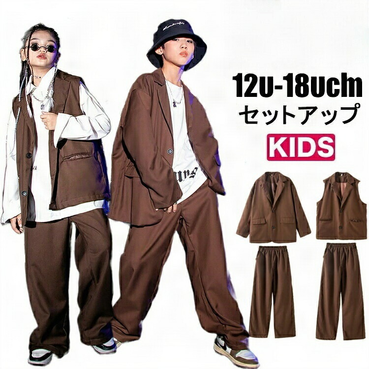 秋色 ジャケット ダンス 衣装 キッズ 韓国 ガールズ 茶色 スーツ風 トップス ベスト パンツスーツ ヒップホップ HIPHOP 派手 ジャズダンス 練習着 舞台服 応援団 人気 おしゃれ 発表会