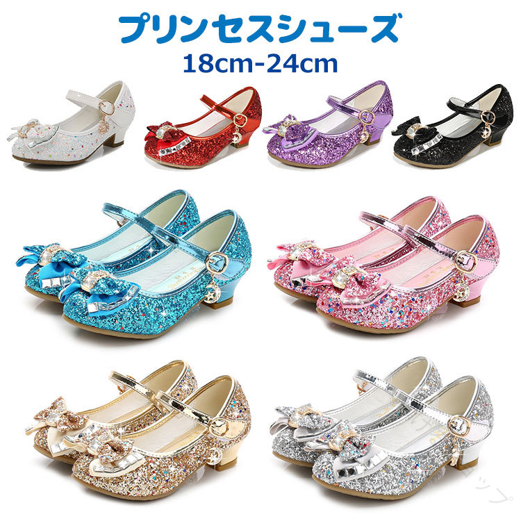 プリンセスシューズ 女の子 キラキラ ピカピカ ヒール 蝶結び スパンコール 七五三 結婚式 発表会 パーティー クリスマス プレゼント 子供靴 かわいい お洒落 面ファスナー キッズシューズ