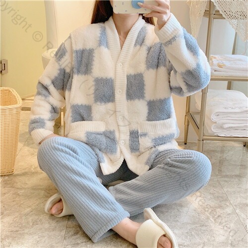 冬のマタニティに最適な暖かいモコモコ素材で授乳口付き 授乳服としても使える長袖上下セット おしゃれで快適なルームウェア