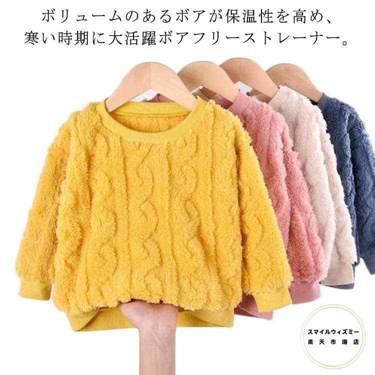 両面起毛 トレーナー キッズ 90-130cm 長袖 トップス 冬服 秋 フランネル もこもこ ボアフリース 子供服 男の子 女の子 ベビー服 柔らかい 温かい 防寒 スウェット 90 100 こども