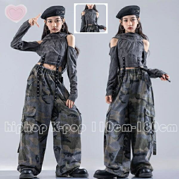 キッズ へそ出し トップス ダンス服 女の子 レー フード付き グレー ダンスウェア hiphop K-pop 舞台 団体服 ガールズ ステージ衣装 演出服 ストリートダ 肩の出る