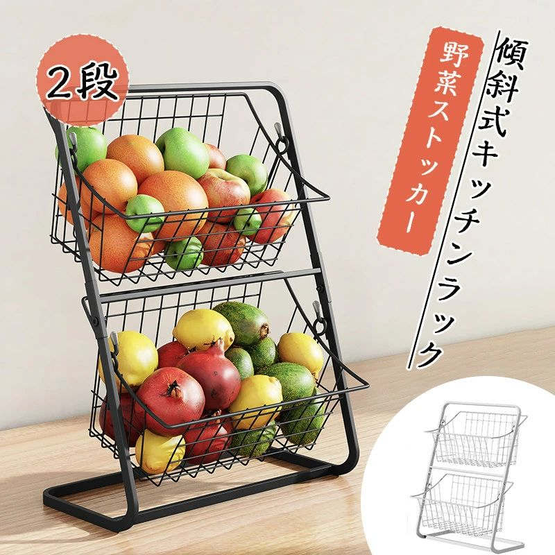 キッチンラック 2段 スチール 傾斜 おしゃれ スリムラック 棚 野菜ストッカー 果物 キッチンストッカー 隙間収納 キッチン 洗面所 ランドリー おもちゃ 台所
