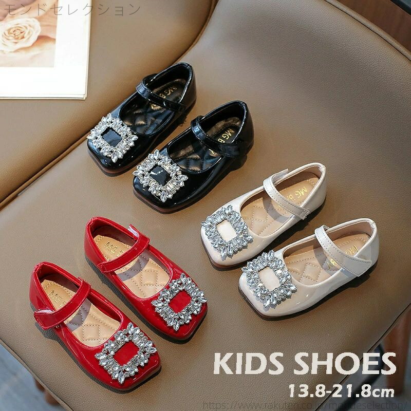 ビジュー 付き 女の子 キッズ ベビー 子供靴 スクエア バックル パンプス シューズ フォーマル靴 ピアノ発表会
