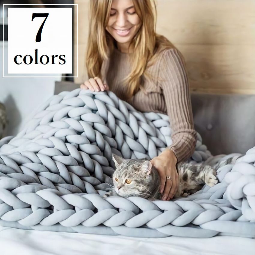 ブランケット チャンキーニットブランケット 寝具 ひざ掛け 肩掛け 極太 布団 毛布 おしゃれ かわいい ローゲージニット 掛け布団 マット カーペット 足マット あたたかい 防寒 寒さ ペットマット