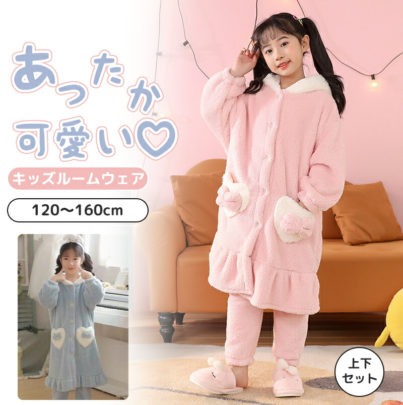 ルームウェア 上下セット ジュニア キッズ パジャマ ナイトウェア 冬用 防寒 もこもこ ふわふわ あったか 長袖 ロングパンツ 100 110 120 130 140 160 170cm 幼 150