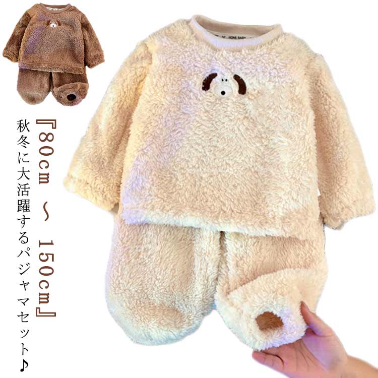 男の子 ルームウェア 女の子 パジャマ もこもこ あったか 上下セット ふわふわ 長袖 部屋着 防寒 キッズ 厚手 秋冬 裏起毛 暖かい 柔らかい 寝間着 100~165