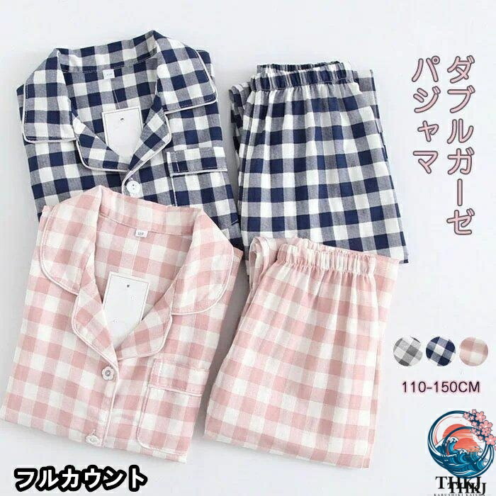 パジャマ ダブルガーゼ チェック キッズ 長袖 子供 女の子