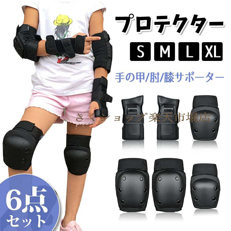 プロテクター 大人用 キッズ用 保護パッド 手の甲 肘 膝 サポーター 6点セット スポーツプロテクター スケートボード ローラースケート 黒 自転車