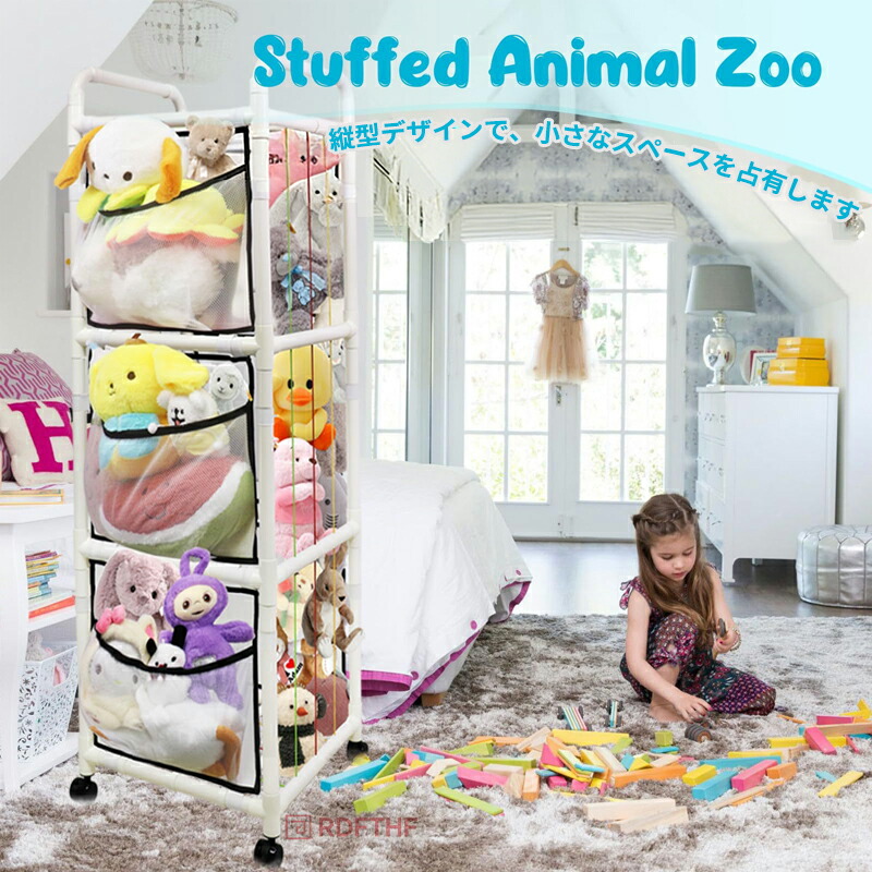 ぬいぐるみ 収納 ネット 動物園 おもちゃ整理 ホルダー 棚 車輪付き360°回転 ぬいぐるみオーガナイザーメッシュ 大容量 陳列ケース 抱き枕 おもちゃ DIY人形展 陳列棚