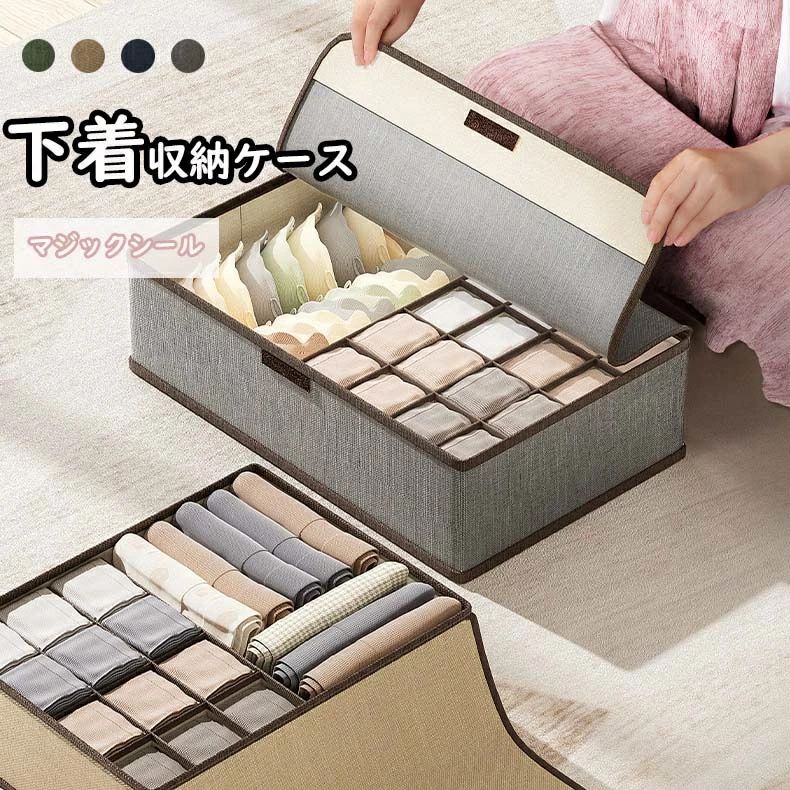 仕切りケース 蓋付き 収納ボックス 布 折りたたみ 下着収納ケース ランジェリー収納ボックス 引出し収納 小物 アンダーウェア 靴下 ハンカチ ブラジャー ネクタイ 衣類ケース コンパクト