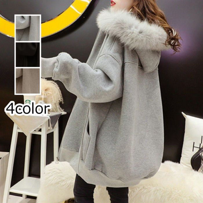 パーカー レディース ジッパー 裏起毛 ファーフード付き コート