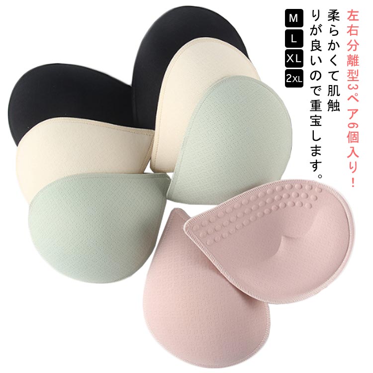 左右分離型 ブラパッド 左右 3ペア 付け替え 6個入り 替え カップ スポーツブラ ブラキャミ 通気性