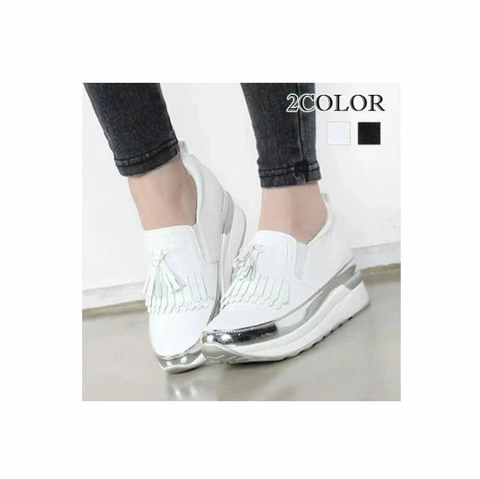色インソールタッセルスニーカー レディース スニーカー タッセル シューズ インヒール スリッポン インソール インヒールシューズ 厚底