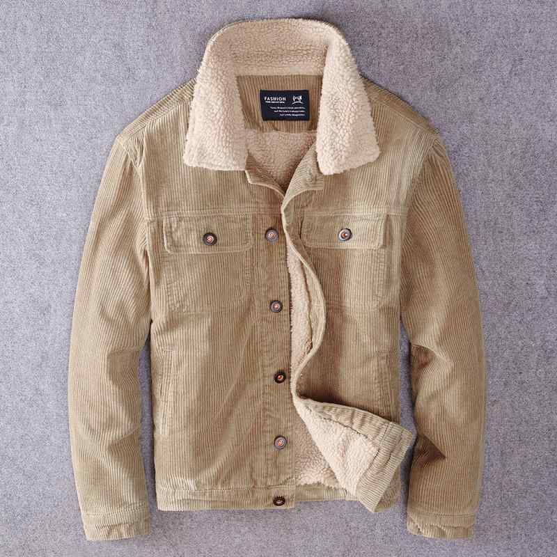 ジャケット メンズ ランチコート コーデュロイ ボア 裏ボア 秋冬 カーキ色 杏色ロングコート 防寒着