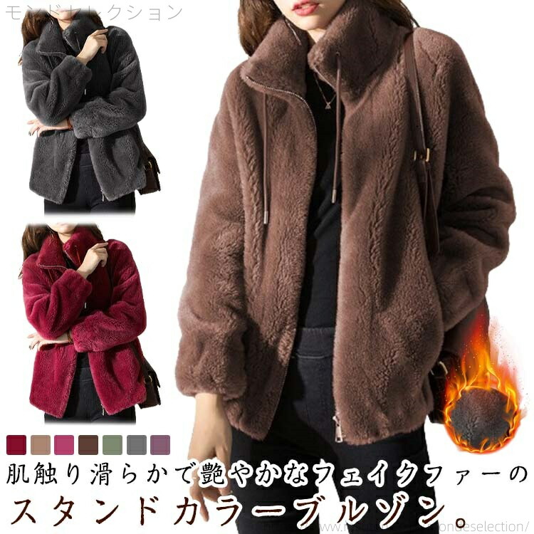 フリースジャケット 上着 ショート丈 ハイネック ブルゾン もこもこ ジップアップ ボア パーカー 長袖 フリース