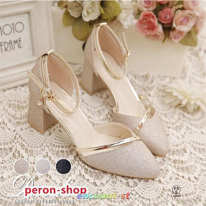 シューズ結婚式レディース疲れないパンプス痛くないポインテッドトゥストラップキラキラピンヒールパーティーシューズ歩きやすい50代30代40代