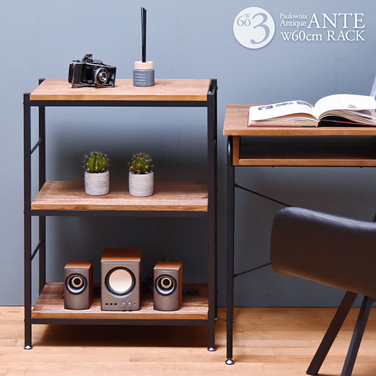 60 3段 オープンラック 収納棚 天然木 桐箪笥 北欧 本棚 リビング収納 キッチン収納 食器棚 ヴィンテージ インダストリアル モダン ナチュラル 3段 パイプラック 幅60