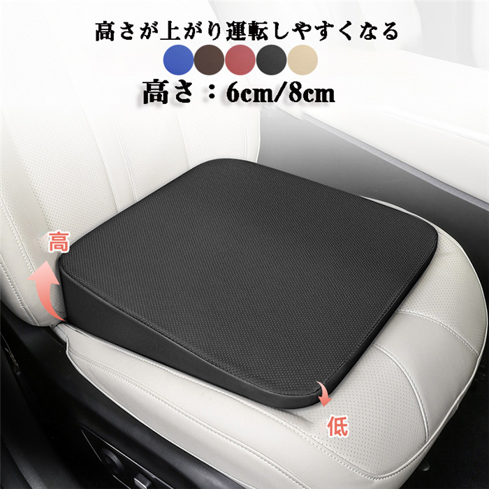 シートクッション 車 クッション シートカバー 高さ調節 6 8 低反発 レザー 通気生地 厚手 初心者 衝撃吸収 前方を見やすい お尻クッション 運転席 助手席 女性 無地 長距離 カークッ 座席
