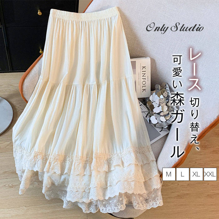 スカート レース 切り替えスカート 綿 レディース 新作 ロングスカート ペチコート ウエストゴム ボトムス ベーシック 刺繍 切り替え 可愛い 春 夏 秋 デザイン感 綺麗目 フレア カジュ お洒落