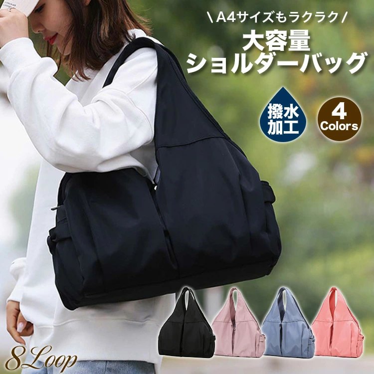 ショルダーバッグ レディース マザーズバッグ 大容量 ジムバッグ 撥水加工 多機能 スポーツバッグ 軽量 防水 ファスナー付き 収納抜群 ポケット多い 肩掛け ブラック 黒 2way