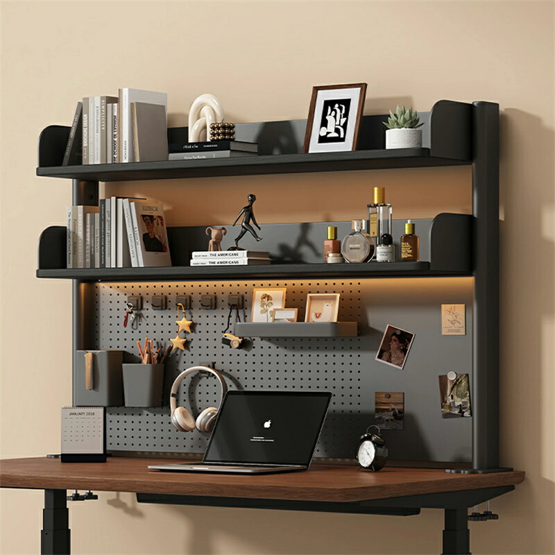 デスク上収納ラック クランプ式 机上ラック 有孔ボード付き 1/2段 ホワイト ブラック 組立式 高さ調節できる棚 多機能 学校/オフィス/事務用品