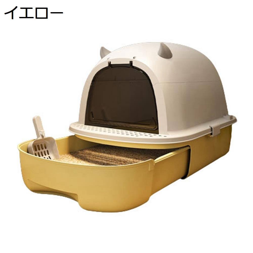猫トイレ ドーム型 引き出し式 大型猫用 砂飛び散り防止 ドア付き コンパクト 掃除簡単 スコップ付き 猫用トイレ本体 キャットトイレ ニオイ防止