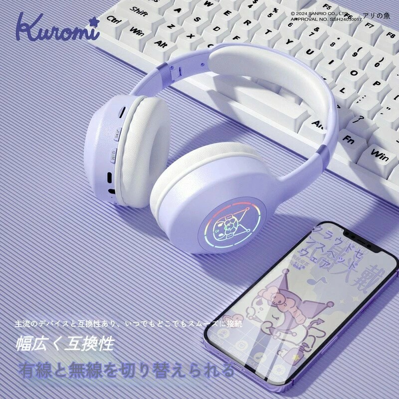 サンリオ ワイヤレスヘッドホン 5.2 ワイヤレスヘッドホン ノイズキャンセリング 軽量 完全ワイヤレスステレオイヤホン サンリオ 有線 無線 切り替え