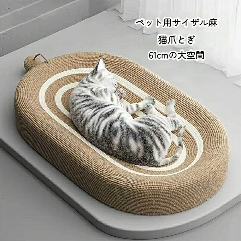 猫 爪研ぎ 天然麻 ベッド 61cm 猫爪とぎ ボール付き ネコベッド つめとぎ ねこ 楕円形 段ボール 耐久性 高密度 遊び保護 ストレス発散 キャット ネコ おしゃれ 爪みがき 猫つめとぎ