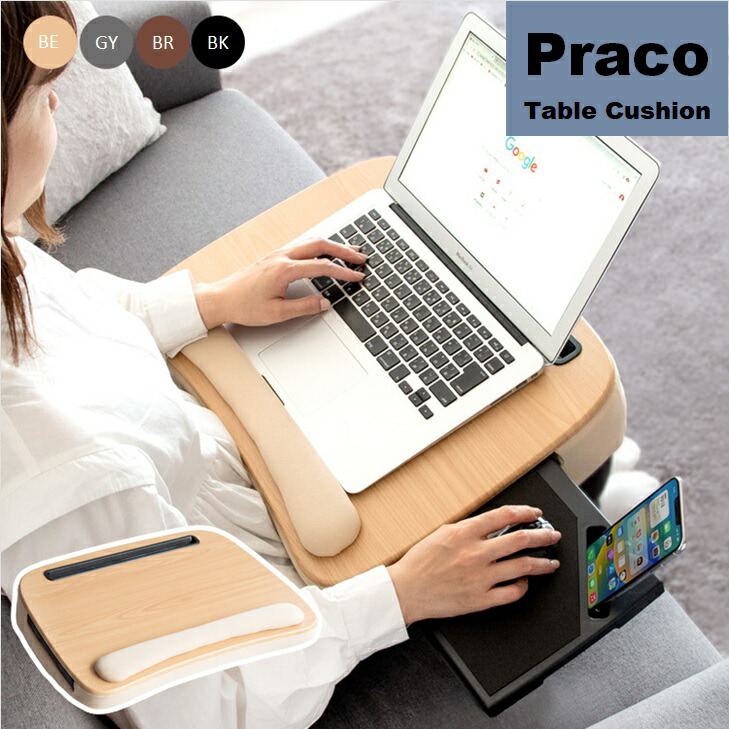 テーブルクッション マウストレー付 Praco プラコ テレワーク 在宅勤務 膝上テーブル CN-80T クッションテーブル 持ち運びテーブル ノートパソコン台 MIYATAKE ラップトップテーブル
