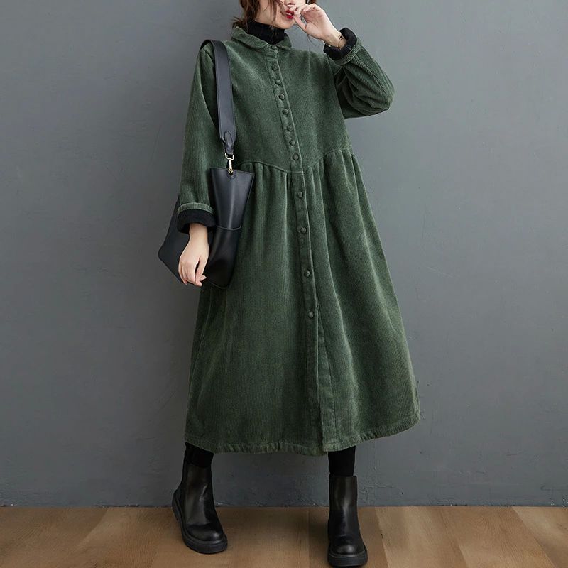 コーデュロイ 秋冬 裏起毛 きれいめ ロング シャツワンピース 長袖 大きいサイズ 前開き コーデュロイワンピー ロングワンピース